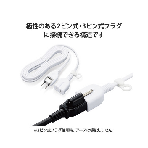 ●本体差込口形状/2ピン(極性のある2ピン式プラグ対応、3ピン式プラグ対応※アース機能はありません)
