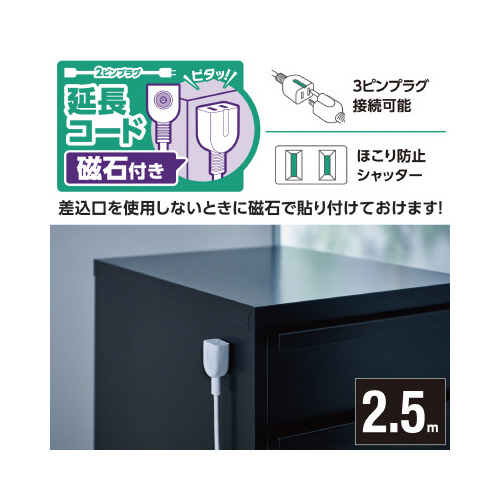 機器のコードがコンセントに届かない場合などに、電源を延長するためのコードです。