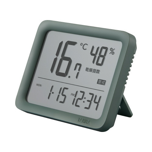 暑さ指数と乾燥指数で熱中症/季節性インフルエンザになりやすい室内環境をお知らせ。大きな表示で見やすい、目覚ましアラーム付き。シンプルでインテリアに馴染むデザイン。設置場所を選ばない便利な3Way。