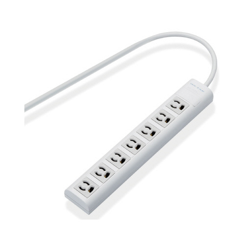 EURoHS指令準拠(10物質)した環境にやさしい、3P式7個口の雷サージガード機能搭載抜け止めタップ。裏面の強力マグネットでスチール面に固定可能。電源コードには二重被ふくケーブルを使用。
