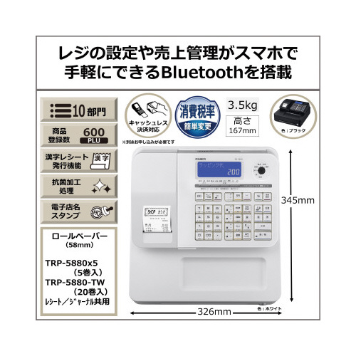 インボイス適格簡易請求書(簡易インボイス)対応。スマホと連携して店舗運営を支援。幅広く活躍するスタンダードモデル。