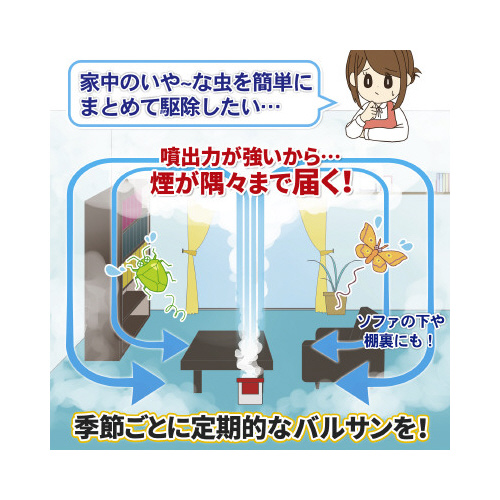 お部屋に発生・侵入する、幅広い種類の不快害虫を駆除します。水やマッチを使わず、蓋でこするだけの簡単スタートです。火災報知器が作動しないようにするカバーが付属しています。