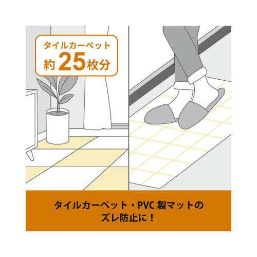 ※●使用後6か月でテープを貼り替えてください。●床面の表面状況・状態により、貼りつけ面を傷めたり、のり残りする場合があります。のり残りした場合は、市販ののりはがし専用用品をお使いください。●タイルカーペット側のテープは、はがせません。●面ファスナーの固定性が悪くなってきましたら、テープを貼り替えてください。貼り替えるときは、当初の位置からずらした箇所に貼ってください。(貼付位置が中央から少しズレても、固定性に問題はありません。)