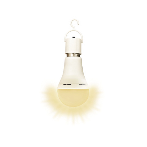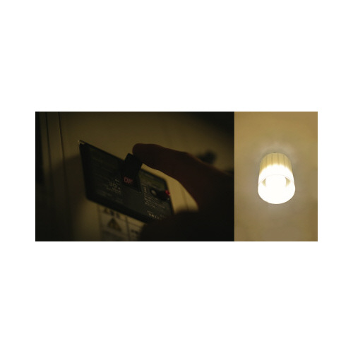 バッテリー内蔵で停電がおきても一瞬で再点灯します。電球の口金に触れる事で取り外した状態でも点灯が可能。