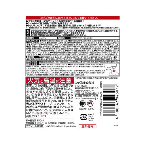 強力噴射スプレーでカメムシ駆除!速効性と長期持続性のダブル有効成分配合!手の届かない軒下にも届く3mの強力噴射。効果が約4ヶ月持続します。屋外専用