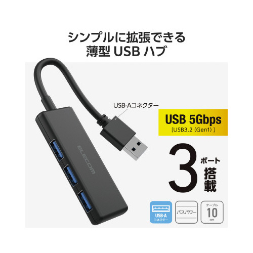 USB-Aポートを増やしてデスクまわりをすっきり。3つのUSB-Aポートを搭載した、USB-A接続のUSBハブです。