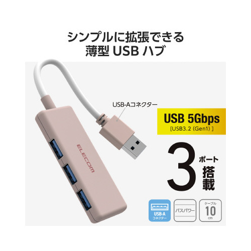 USB-Aポートを増やしてデスクまわりをすっきり。3つのUSB-Aポートを搭載した、USB-A接続のUSBハブです。