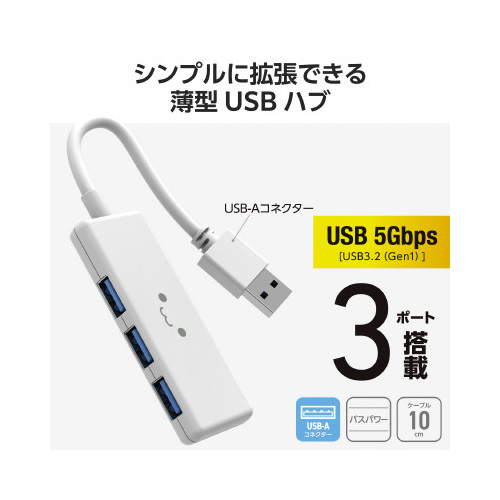 USBハブ(USB-A×3)バスパワー しろちゃん