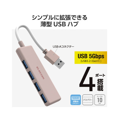 USB-Aポートを増やしてデスクまわりをすっきり。4つのUSB-Aポートを搭載した、USB-A接続のUSBハブです。