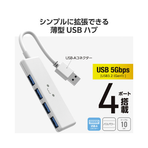 USB-Aポートを増やしてデスクまわりをすっきり。4つのUSB-Aポートを搭載した、USB-A接続のUSBハブです。
