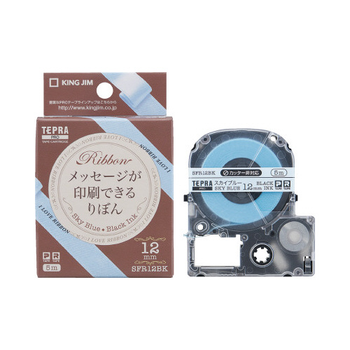 テプラで文字を印刷できる布製のテプラ専用りぼんです。販促品やちょっとしたギフトのラッピングに活躍!SFR12BK。