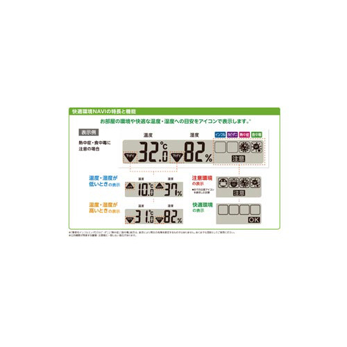 お部屋の環境や快適な温度・湿度への目安をアイコンでわかりやすく表示します。
