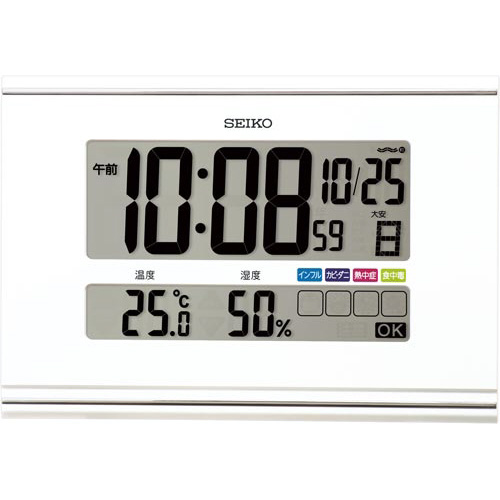 ●機能/電波修正機能、電波オフ機能、フルオートカレンダー、温度湿度表示、快適環境NAVI、六曜表示、掛け置き兼用