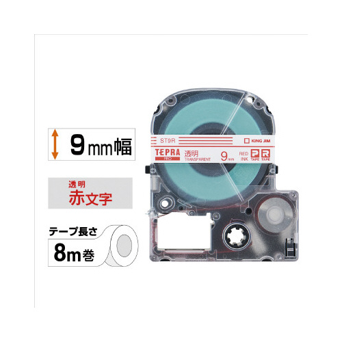 テプラ PROテープ 透明ラベル 9mm 赤文字
