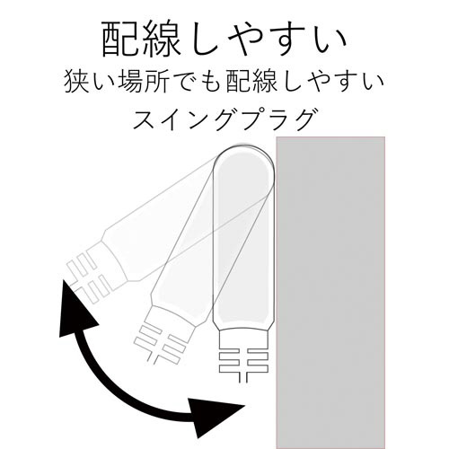 幅の広いACアダプタの接続に最適!隣のコンセント差込口をふさがずにACアダプタを接続できる電源延長コード。
