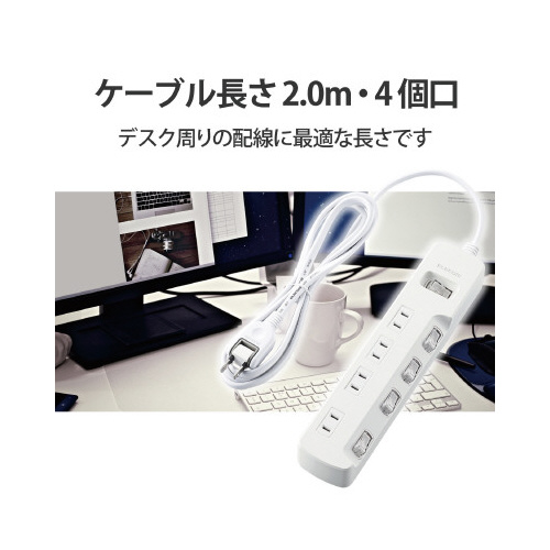 省エネタップ 一括&個別スイッチ 4個口 2m