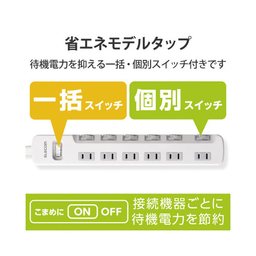 省エネタップ 一括&個別スイッチ 6個口 1m