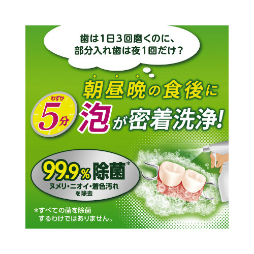 部分入れ歯用洗浄剤 泡が密着洗浄。わずか5分でヌメリ・ニオイを除去。99.9%除菌