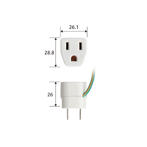 OAタップなどの3ピンプラグを、2ピンプラグに変換します。