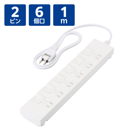 押すだけ簡単!片手でプラグが抜ける6個口の電源タップです。レバーを押すだけで楽にプラグを外せます。吊り穴・フック付きで床面以外にも設置して使えるので、座ったままでの抜き挿しにも便利です。