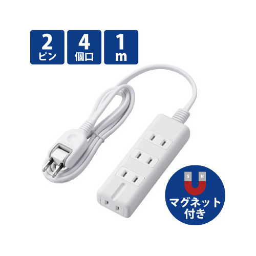 電源タップ 磁石 4個口(内3ピン1) 1m 白