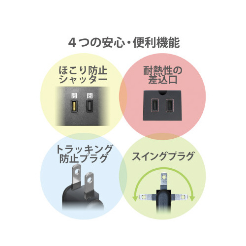 オフィスやご家庭など、さまざまなシーンで使いやすいマグネット,ほこり防止シャッター,雷サージ付電源タップ。