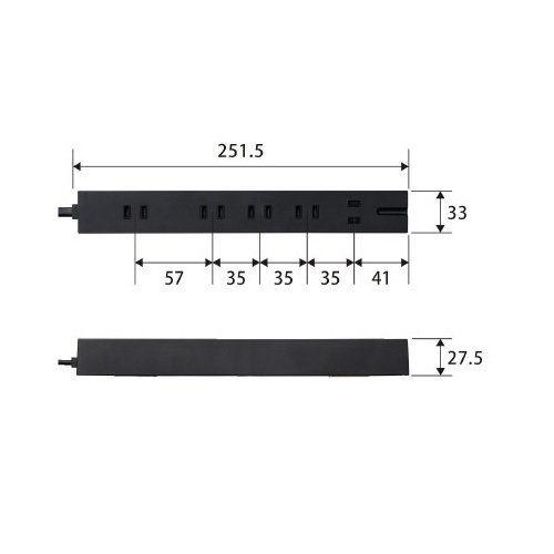 ●外形寸法/幅34mm×奥行252mm×高さ28mm※コード部分及びプラグ部分を除く