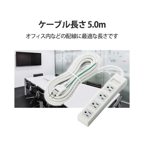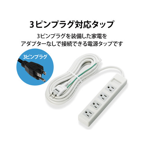 オフィスでの使用に最適。プロジェクタやモニタなどの3ピンプラグが使用されているOA機器をアダプタなしで接続できる3ピンプラグ対応タップです。