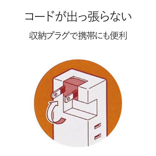 耐熱性に優れたユリア樹脂を使用。1つのコンセントから3口に電源を分配することができる、外出時などにも便利なモバイルトリプルタップ。