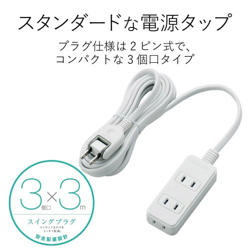 スイングプラグタップ 3個口 3m ホワイト