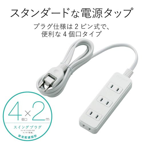 電源タップの基本性能をしっかり搭載!180度スイングプラグを採用し、オフィスやご家庭など、さまざまなシーンで使いやすいスタンダードな電源タップ。