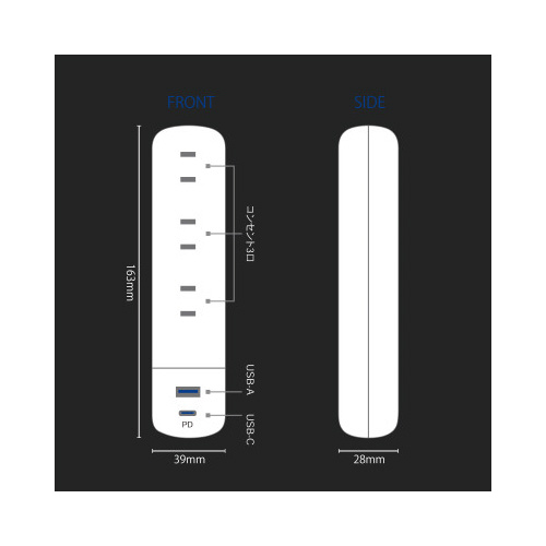 ●仕様/USB-Cポート:PD対応、USB-Aポート:リバーシブル・トラッキング火災防止