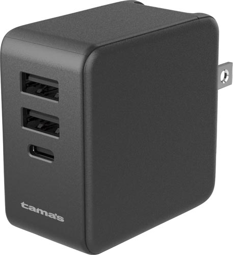 新素材GaN(窒化ガリウム)を半導体(集積回路)に採用。従来のシリコン半導体に比べ低発熱と小型・軽量化を実現。Type-C+Aポート同時使用でパソコン+スマートフォン最大3台同時充電