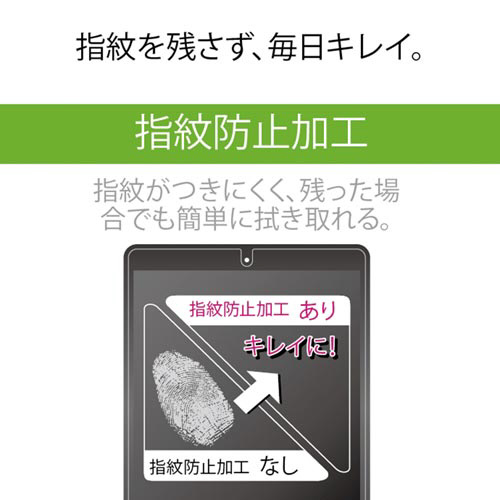 気泡がキレイに抜けるエアーレスタイプ。iPad Air 2013年モデルの液晶画面をキズや汚れから守る、防指紋タイプの液晶保護フィルム。