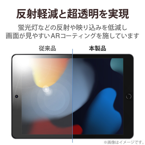 ブルーライトカットタイプのiPad第9世代(2021年モデル)、iPad10.2インチ2020年モデル、iPad10.2インチ2019年モデル用衝撃吸収フィルムです。