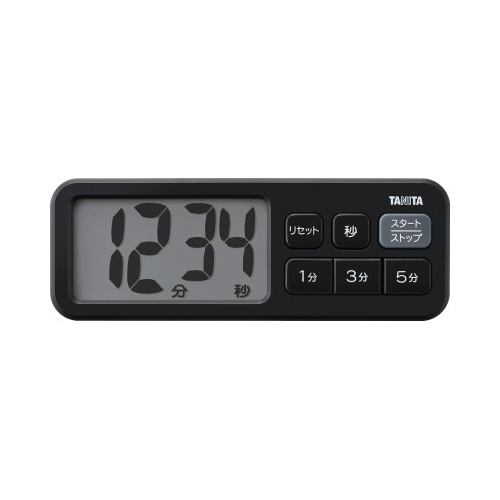 抗菌仕様(SIAA認証)で清潔に使える「でか見え」タイマー。「1分」「3分」「5分」「秒」のボタンで設定が便利。見やすい文字高30mmの大型表示。押しやすい大きなボタン。