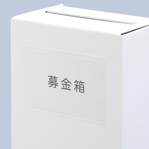 ご意見箱や募金箱など、シーン別で使い分けできるボックス。丈夫な貼り表紙仕様で、軽量で持ち運びにも便利。見出し紙は「ご意見箱」「募金箱」「貴名受」「(無地)」の4種類が同梱されています。