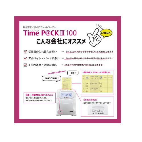 ※対応給与ソフト/弥生(弥生給与)、OBC(給与奉行)、PCA(PCA給与)、応研(給与大臣)、給料王他 詳しくはメーカーHP(http://timepack.amano.co.jp/products/relation.html)をご覧下さい。