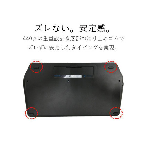 タブレットを立てられるスタンド付のBluetoothキーボード。最大3台までのマルチペアリングに対応。