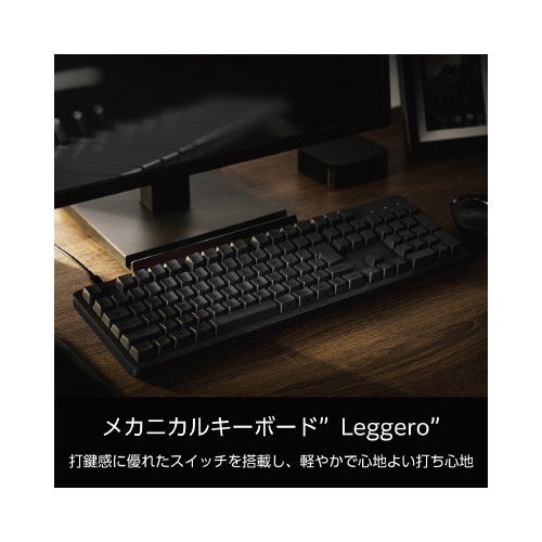 ミニマルなデザインと軽やかな打ち心地を両立したメカニカルキーボード“Leggero(レジェロ)”シリーズ。茶軸メカニカルスイッチを搭載した有線フルサイズキーボード。