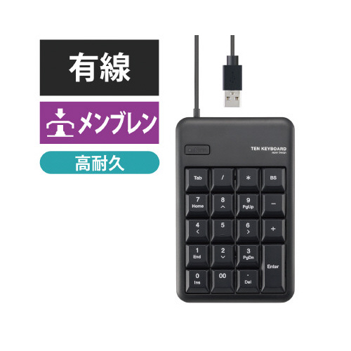 Excelに便利な[Tab]キー・[00]キー付き。ノートパソコンでの使用に最適なスタンダードUSBテンキーボード。