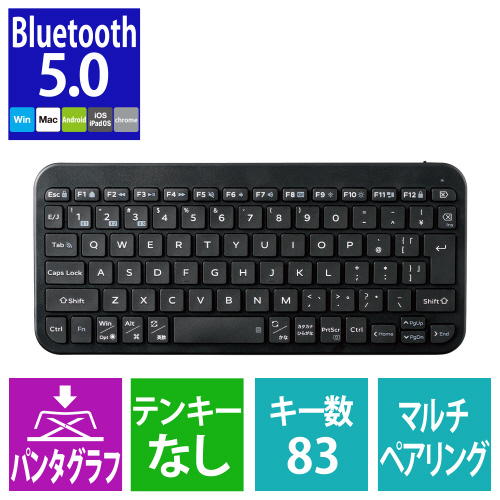 持ち運びに便利な薄型・軽量設計!各OSに最適な入力モードに切り替えが可能!マルチペアリング機能により、1つのキーボードで最大3台までのデバイスを使用できるBluetoothパンタグラフミニキーボード。