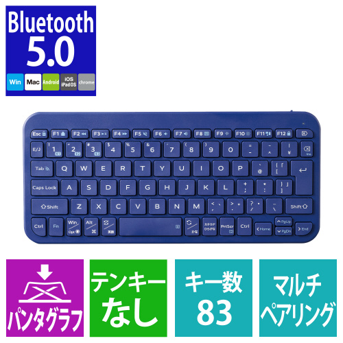 持ち運びに便利な薄型・軽量設計!各OSに最適な入力モードに切り替えが可能!マルチペアリング機能により、1つのキーボードで最大3台までのデバイスを使用できるBluetoothパンタグラフミニキーボード。
