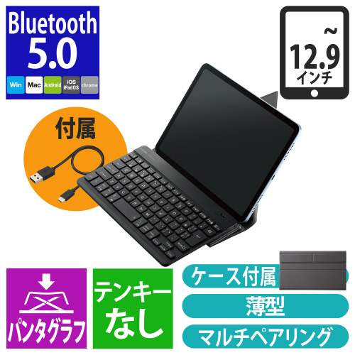 最薄部わずか5.7mm!裏面にはスタンドになる保護ケース付きで、ワンランク上の携帯性と打ちやすさを実現したBluetooth(R)ウルトラスリムキーボード。各OSに最適な入力モードに切り替え可能。