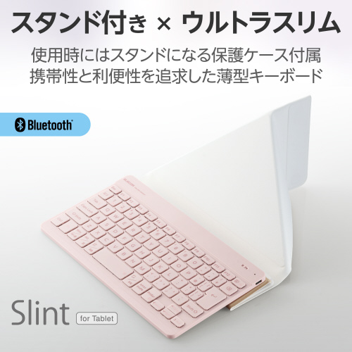 最薄部わずか5.7mm!裏面にはスタンドになる保護ケース付きで、ワンランク上の携帯性と打ちやすさを実現したBluetooth(R)ウルトラスリムキーボード。各OSに最適な入力モードに切り替え可能。
