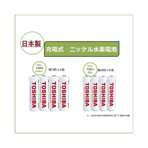 安定したパワーで長く使える充電式ニッケル水素電池。自己放電を大幅に抑制、1年後の容量残存率90%。ベルマーク付き電池商品は東芝だけ!