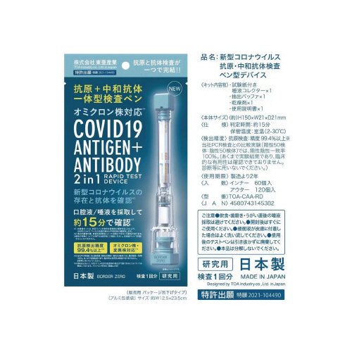 これ1本で抗原・抗体検査が可能です。※本製品は研究用試薬です。体外診断用医薬品ではありません。ご使用に際しては説明書をよくお読み頂き、ご自身の責任による自己採取のもと正しくご使用ください