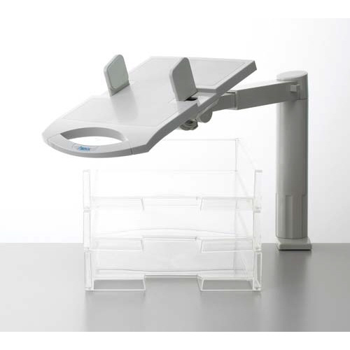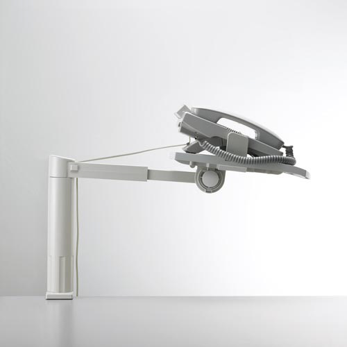 広がる、机上空間。テレホンスタンドで電話を引き上げて、机上のスペースを広げます。デスクのコード穴にも取り付け可能です。360度回転できるから共用にもおすすめ。