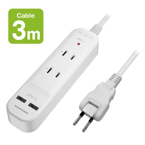 シャッター付コンセント×2+USBポート×2を備えたACタップ。充電器内蔵だからデスク周りもスッキリ。