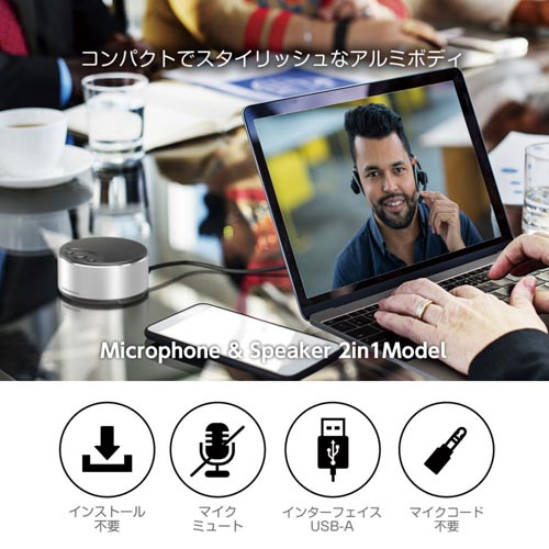 WEB会議に最適!マイク&スピーカーの1台2役。ミュート機能搭載で一時的にマイクをオフに。エコーキャンセル機能搭載。小型スピーカーとしても使用可能。無指向性マイク搭載で半径約2mの範囲で集音